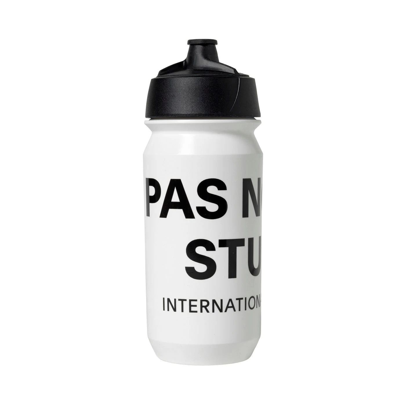 A functional and visually appealing bidon featuring an oversized Pas Normal Studios logo. With its innovative membrane and lockable valve, this bidon is easy to use, allowing you to effortlessly rehydrate on your ride.